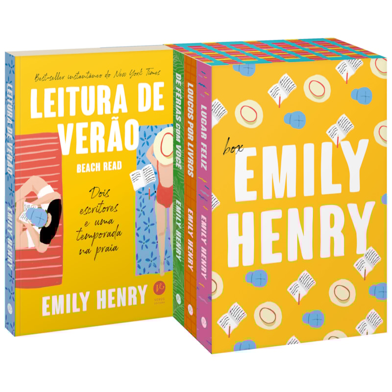 As quatro comédias românticas deliciosas de Emily Henry reunidas pela primeira vez em um charmoso box que vai deixar os fãs apaixonados. Leitura de verãoEm Leitura de verão, uma escritora de romances que não acredita mais no amor e um escritor literário sufocado pela rotina se envolvem em um desafio que pode subverter tudo o que eles sempre pensaram sobre o que é ser feliz. Augustus Everett é um aclamado autor de ficção literária. January Andrews escreve romances best-seller. Eles definitivamente são polos opostos. A única coisa que têm em comum é que, durante três meses, vão morar em casas de praia vizinhas, ambos falidos e paralisados por um bloqueio criativo. Cada um vai finalizar um livro e ninguém vai se apaixonar. Será? De férias com vocêDois melhores amigos. Dez viagens de verão. Uma última chance de se apaixonar.Poppy e Alex. Alex e Poppy. Eles não têm nada em comum. Ela é uma garota rebelde; ele usa calça cáqui. Ela tem um desejo insaciável de viajar; ele prefere ficar em casa lendo um livro. E de alguma forma, desde uma fatídica carona na faculdade há muitos anos, os dois são melhores amigos.Até dois anos atrás... quando eles estragaram tudo. E, desde então, não se falaram mais. Agora Poppy tem uma semana para consertar as coisas. Será que algo mais ainda pode dar errado? Loucos por livrosLoucos por livros vai aquecer o coração dos leitores e mostrar um pouquinho dos bastidores do mercado editorial.Os livros são a vida de Nora Stephens - e ela definitivamente não é o tipo de heroína dos livros. Não é a garota impulsiva, nem a descontraída, muito menos a imagem da meiguice. E é por isso que Nora concorda em passar o verão em Sunshine Falls, Carolina do Norte, quando Libby implora por uma viagem de irmãs.Mas, em vez de piqueniques no campo ou encontros inesperados com um belo médico, ou quem sabe com um barman musculoso, Nora esbarra em Charlie Lastra, um editor ranzinza que ela conhece de Nova York. Seria um daqueles encontros fofos se não fosse o fato de que eles já se viram antes - e nunca foi fofo.Mas, à medida que se veem juntos repetidas vezes, o que eles descobrem pode acabar por deslindar as histórias cuidadosamente elaboradas que eles escreveram sobre si mesmos. Lugar felizLugar feliz traz a história de um casal que ainda não sabe se quer ficar junto ou separado.Harriet e Wyn são o casal dos sonhos desde a faculdade. Só que agora - por razões sobre as quais não conversam - eles não combinam mais. Faz