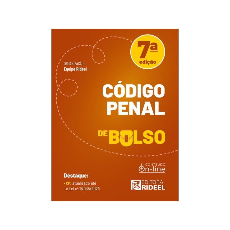 CP: atualizado até a Lei nº 15.035/2024A Editora Rideel, atendendo à necessidade de estudantes e profissionais da área jurídica por obras compactas que permitam a rápida consulta ao texto legislativo plenamente atualizado e com preço acessível, criou a Coleção de Bolso 2025.São livros que trazem a legislação seca em volumes independentes, com formato especial e que você poderá levar para qualquer lugar. A obra proporciona:leitura agradável;notas remissivas elaboradas por especialistas em cada área;diversos facilitadores de consulta (ex.: índice sistemático e detalhado índice alfabético-remissivo).A coleção abrange as principais áreas do Direito e é composta de 8 títulos: Constituição Federal, Código Civil, Código de Processo Civil,Código Penal, Código de Processo Penal, Consolidação das Leis do Trabalho, Código Tributário Nacional e Código de Trânsito Brasileiro.Tradição, qualidade editorial e preço acessível, esta é a Coleção de Bolso da Editora Rideel!